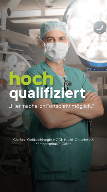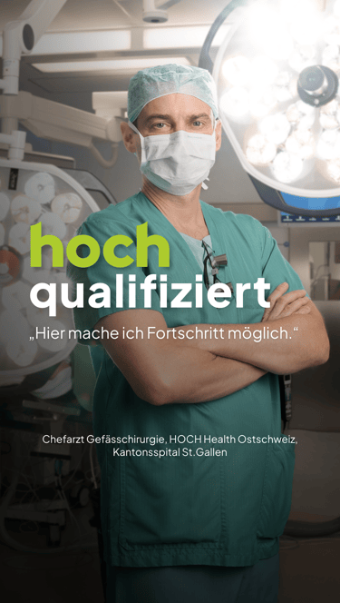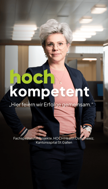 Während meiner Tätigkeit bei xeit AG durfte ich im Auftrag des Kantonsspitals St. Gallen an der Entwicklung einer Kampagne für HOCH – Health Ostschweiz mitwirken. Ziel war es, die neue Netzwerkstruktur sichtbar zu machen und gezielt neue Mitarbeitende für die gemeinsame Vision zu gewinnen.